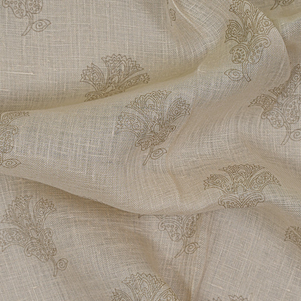 Linen sheer curtain fabric printed - Kimkhwab - Beige
