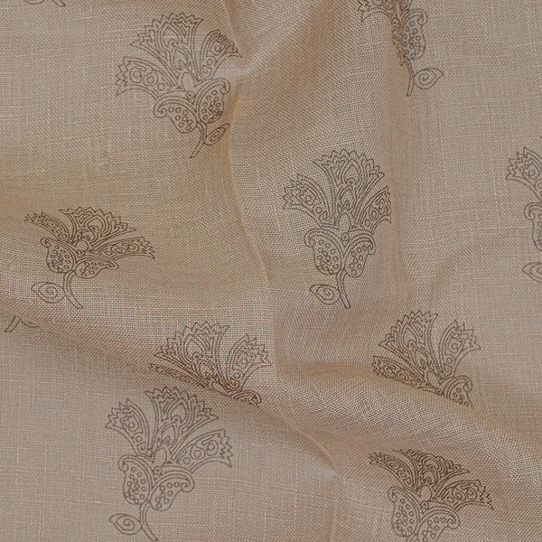 Linen sheer curtain fabric printed - Kimkhwab - Buff