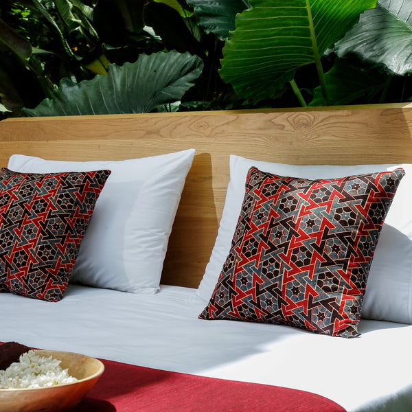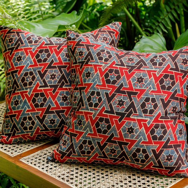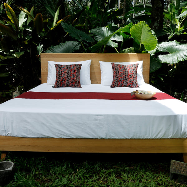 Indian Charm Bedding set with art silk runner & cushions in ajrakh series