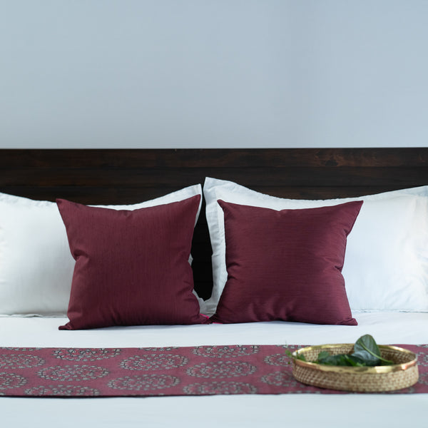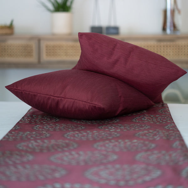 Indian Charm Bedding set with chanderi silk runner & art silk cushions in tribal series