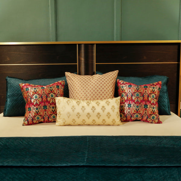 Wedding raaga bedding set with velvette bedspread & brocade cushions