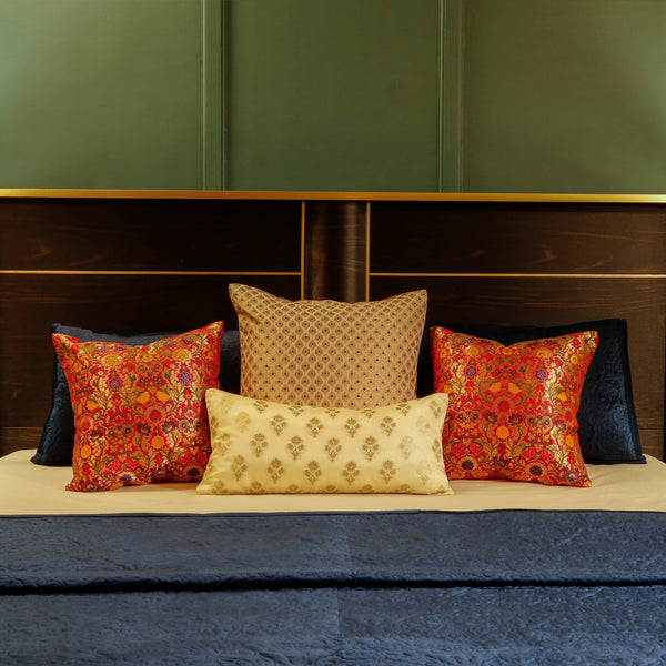 Wedding raaga bedding set with velvette bedspread & brocade cushions