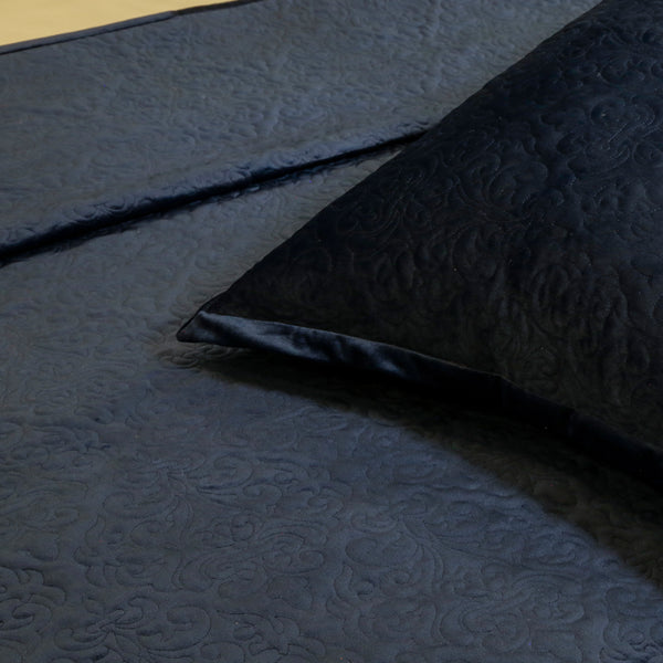 7 piece Bedding set - contains one king size velvette bedspread with two pillow covers & cushions in brocade silk and art silk.