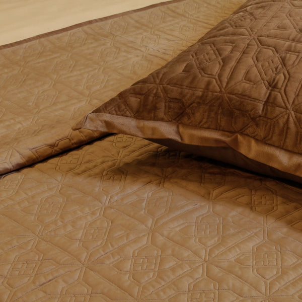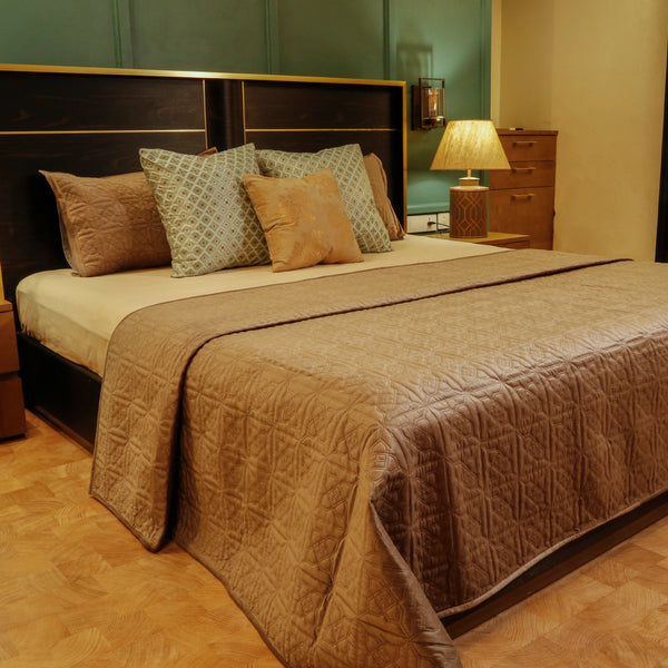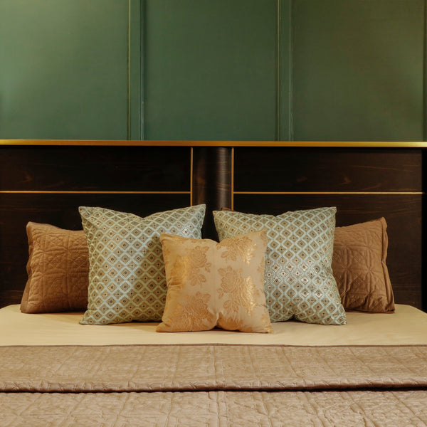 6 piece Bedding set - contains one king size velvette bedspread with two pillow covers & three cushions in brocade silk and cotton silk.
