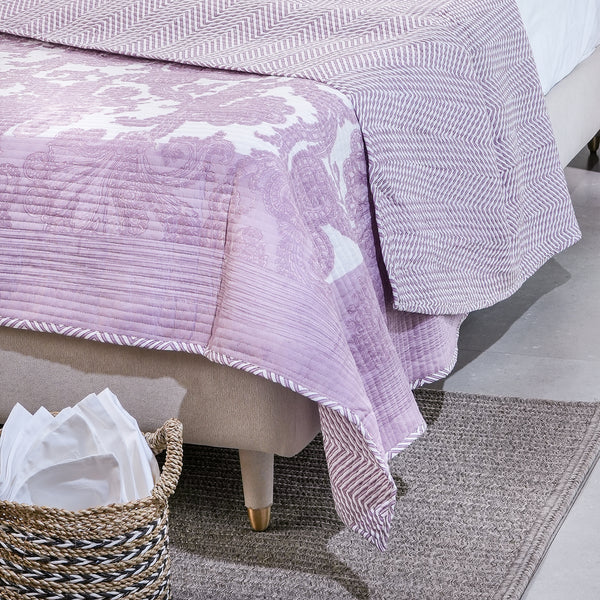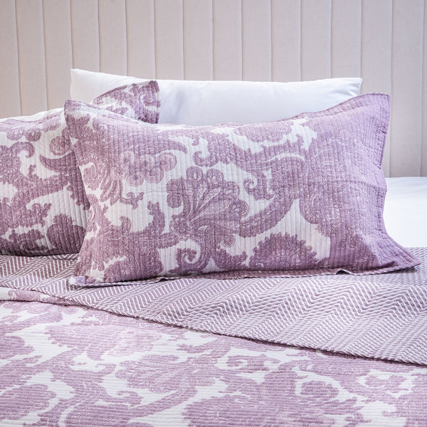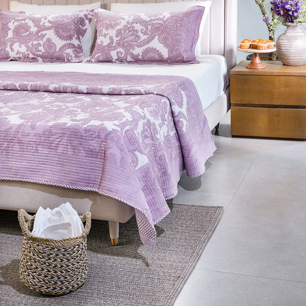 3 Piece bedspread  set: contains one standard king size quilted cotton printed bedspread with two pillow covers.
