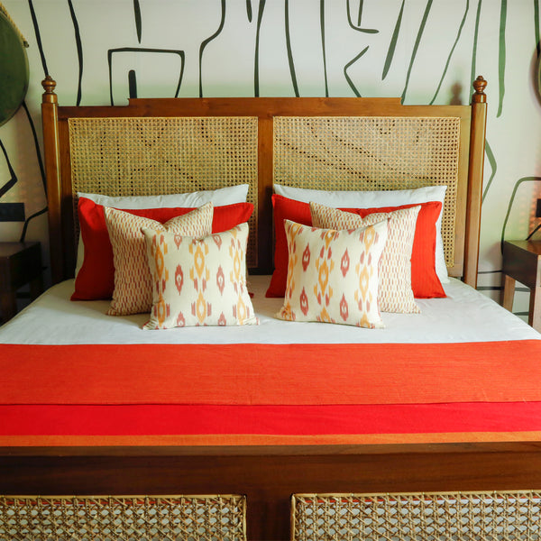 Jaipur Palace Bedding set with cotton duvet set & cushion covers in tussar silk and linen embroidery