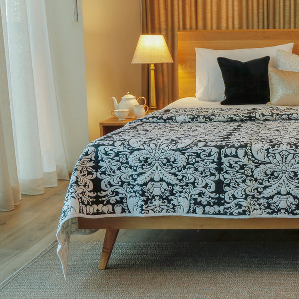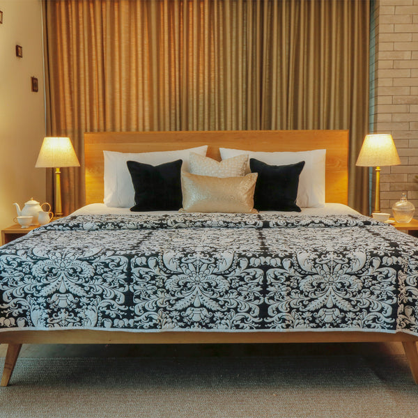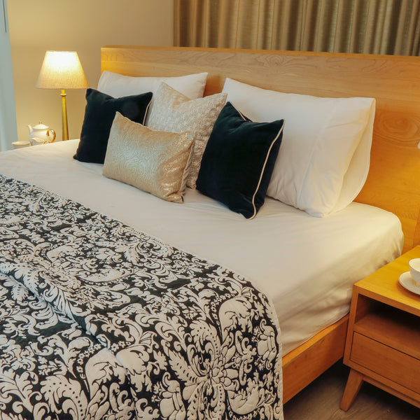 Jaipur Palace Bedding set with cotton duvet set & cushion covers in tussar silk and linen embroidery